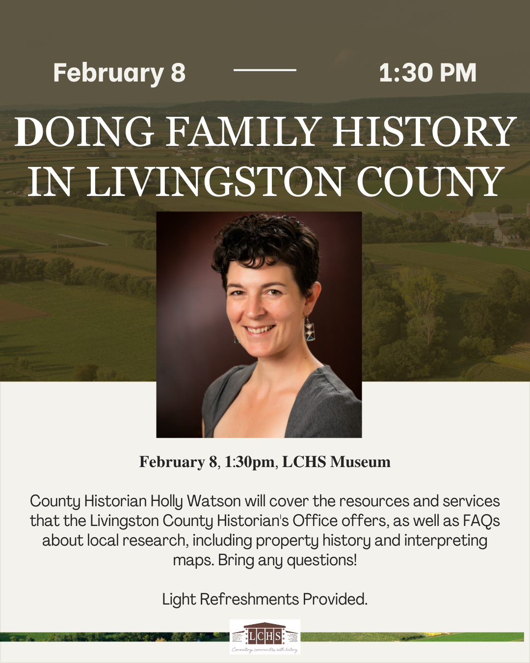 County Historian Holly Watson will cover the resources and services that the Livingston County Historian's Office offers in-house and virtually, as well as some FAQs about local research, including property history and interpreting maps. Bring any questions you may have!
